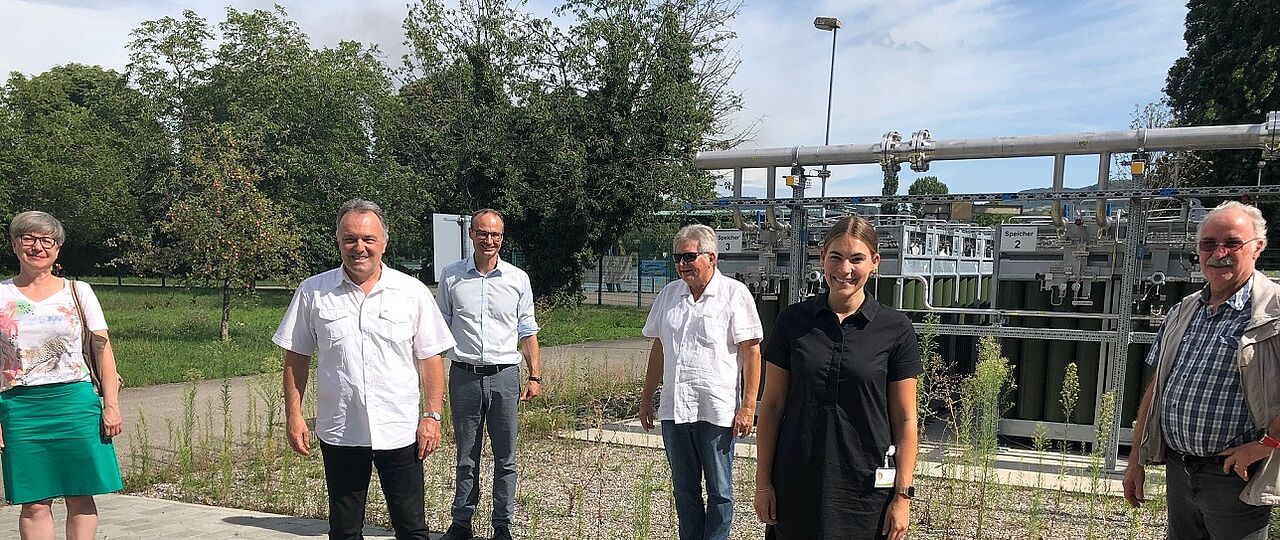 Grenzach-Wyhlen, 14. August 2020. Zusammen mit einer lokalen Delegation der Grünen aus Grenzach-Wyhlen besuchte gestern der heimische Landtagsabgeordnete Josha Frey die Power-to-Gas-Anlage von Energiedienst in Wyhlen. Dabei sicherte er seinen Gastgebern mit einer deutlichen Stellungnahme für die Pionieranlage und den «grünen» Wasserstoff seine Unterstützung zu: «Wir begrüßen es, dass Energiedienst in diese zukunftsweisende Technologie investiert und hierfür ausschließlich erneuerbare Energien nutzt. Denn das Speichern von Energie und das Denken über unterschiedliche Sektoren hinweg sind wichtige Bausteine für das Gelingen der Energiewende.»