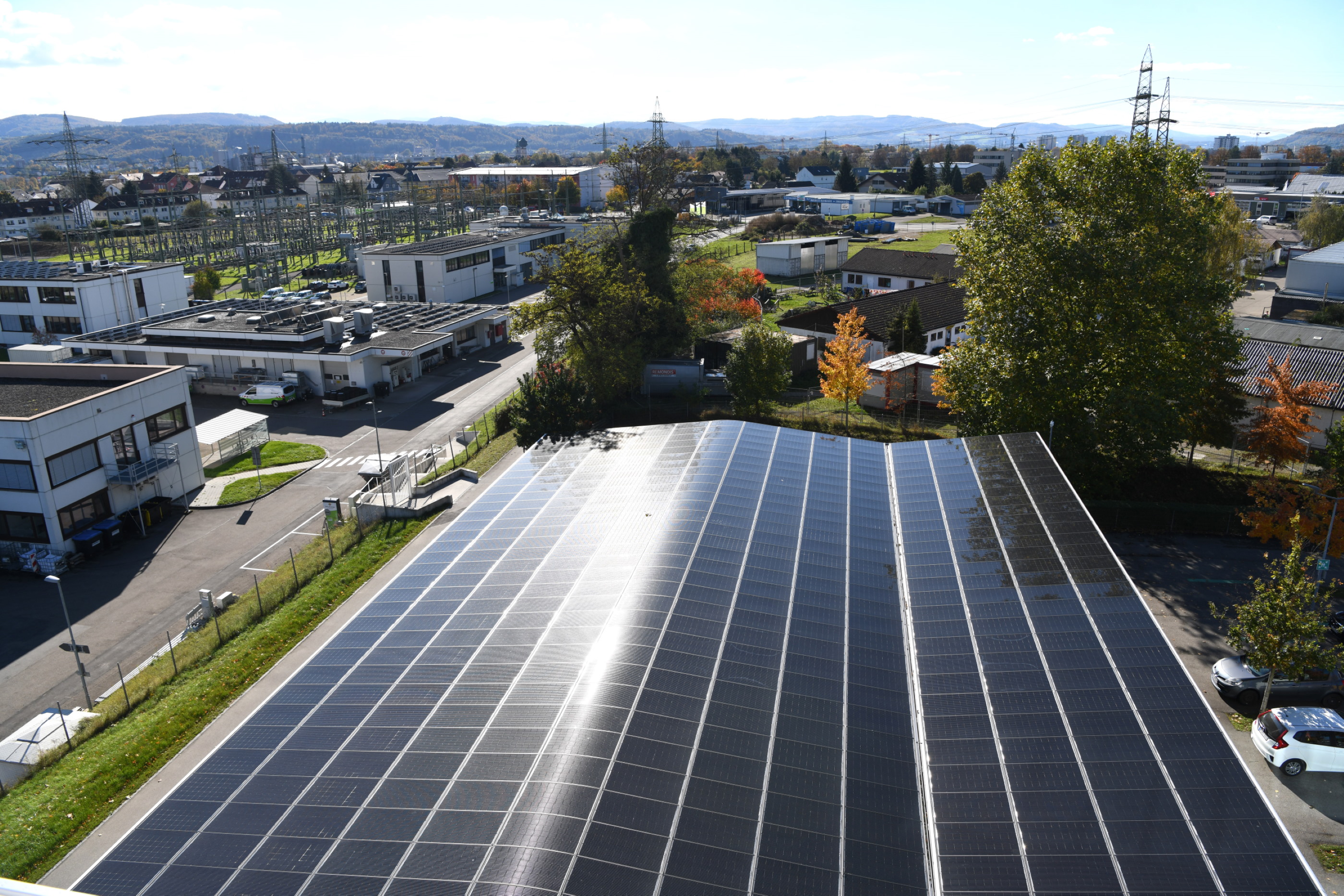Bild 4: 504 Photovoltaik-Module mit einer Leistung von 160 kWp sorgen für genug Strom für die Fahrzeugladung und den Batteriespeicher. Foto: Juri Junkov / Energiedienst AG
