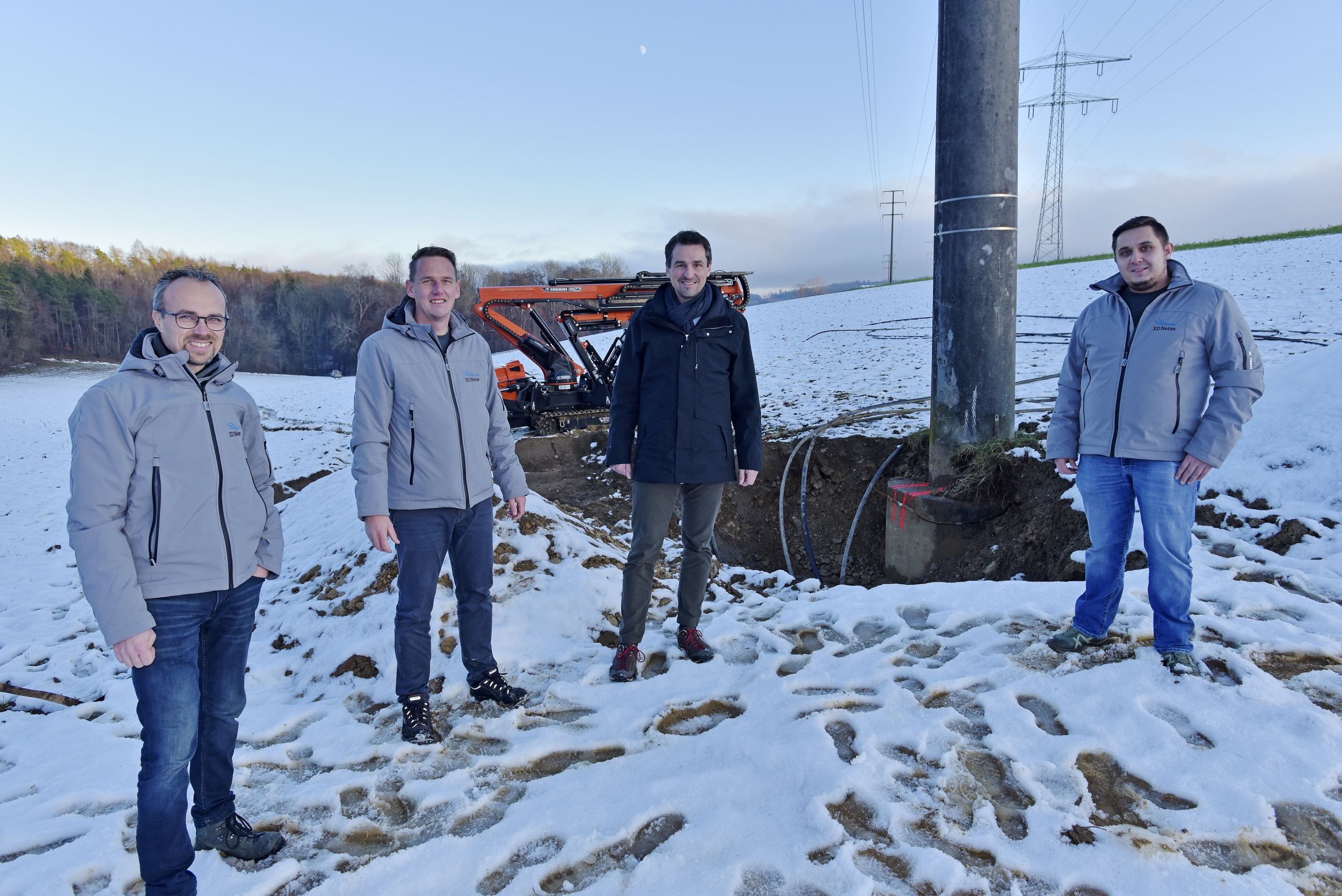 Ühlingen-Birkendorf, 15. Dezember 2021. Die ED Netze GmbH investiert mehr als 600.000 Euro in das Stromnetz im Bereich Ühlingen-Birkendorf. Zwischen den Ortsteilen Raßbach und Talhöfe werden für rund 415.000 Euro insgesamt fünf Kilometer Mittelspannungsleitung neu verlegt. Mittelfristig wird diese Leitung die bisherige rund 8,5 Kilometer lange Freileitung ersetzen. Die Freileitung wird dann später komplett rückgebaut werden. Dafür muss aber, in einem separaten Projekt, eine neue Mittelspannungsleitung vom Umspannwerk Wutöschingen bis nach Raßbach verlegt werden. ED Netze investiert hier weitere 200.000 Euro.