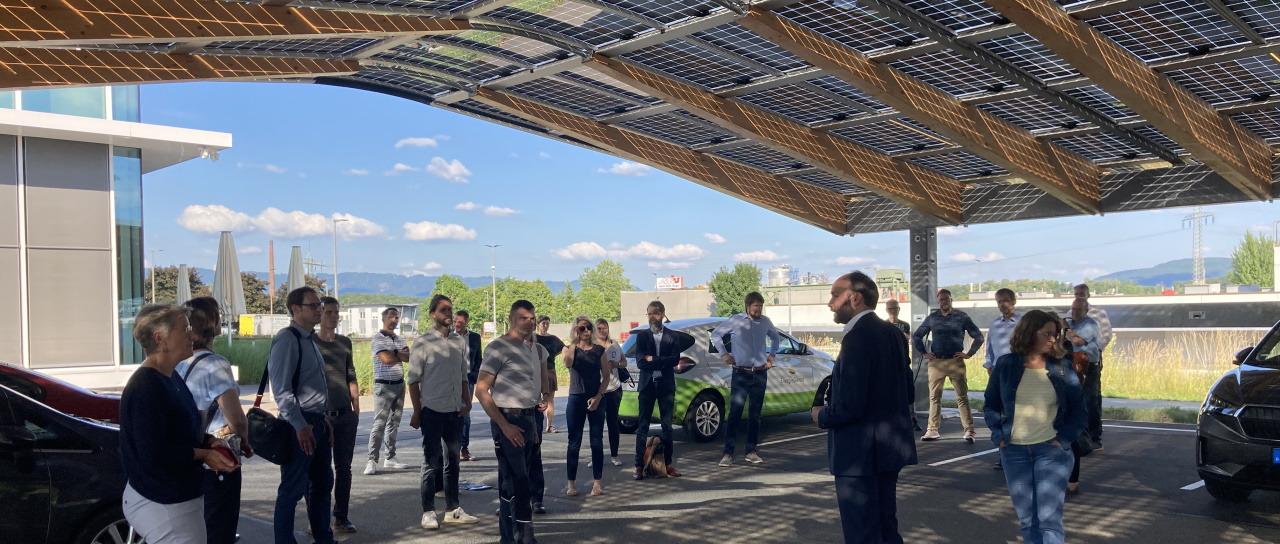 Bild: Die PV-Initiative des Landkreises Lörrach unter dem Photovoltaik-Carport von Energiedienst in Rheinfelden.