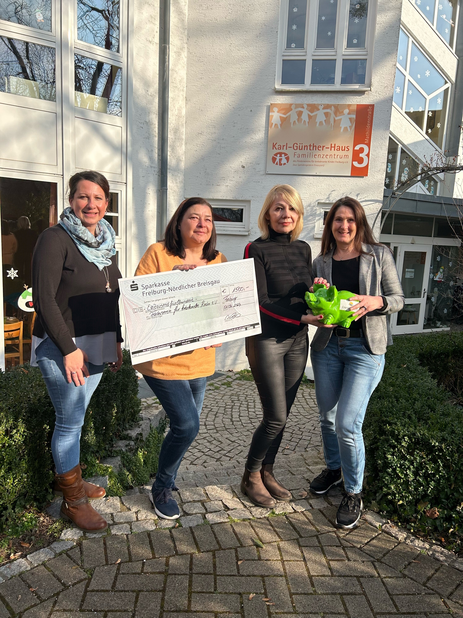 Bei der vom Betriebsrat 2017 initiierten Aktion „Stundenspende“ können Mitarbeitende Stunden aus Überzeitkonten spenden oder auch direkt einen Geldbetrag zur Verfügung stellen. Bereits zum wiederholten Mal werden damit soziale Projekte unterstützt. 1.500 Euro übergaben Sabine Bucher (Energiedienst), Birgitt Möhrle und Alexia Weisser, Betriebsrätinnen bei Energiedienst an Ivana Vukovic, Vertreterin des Fördervereins.