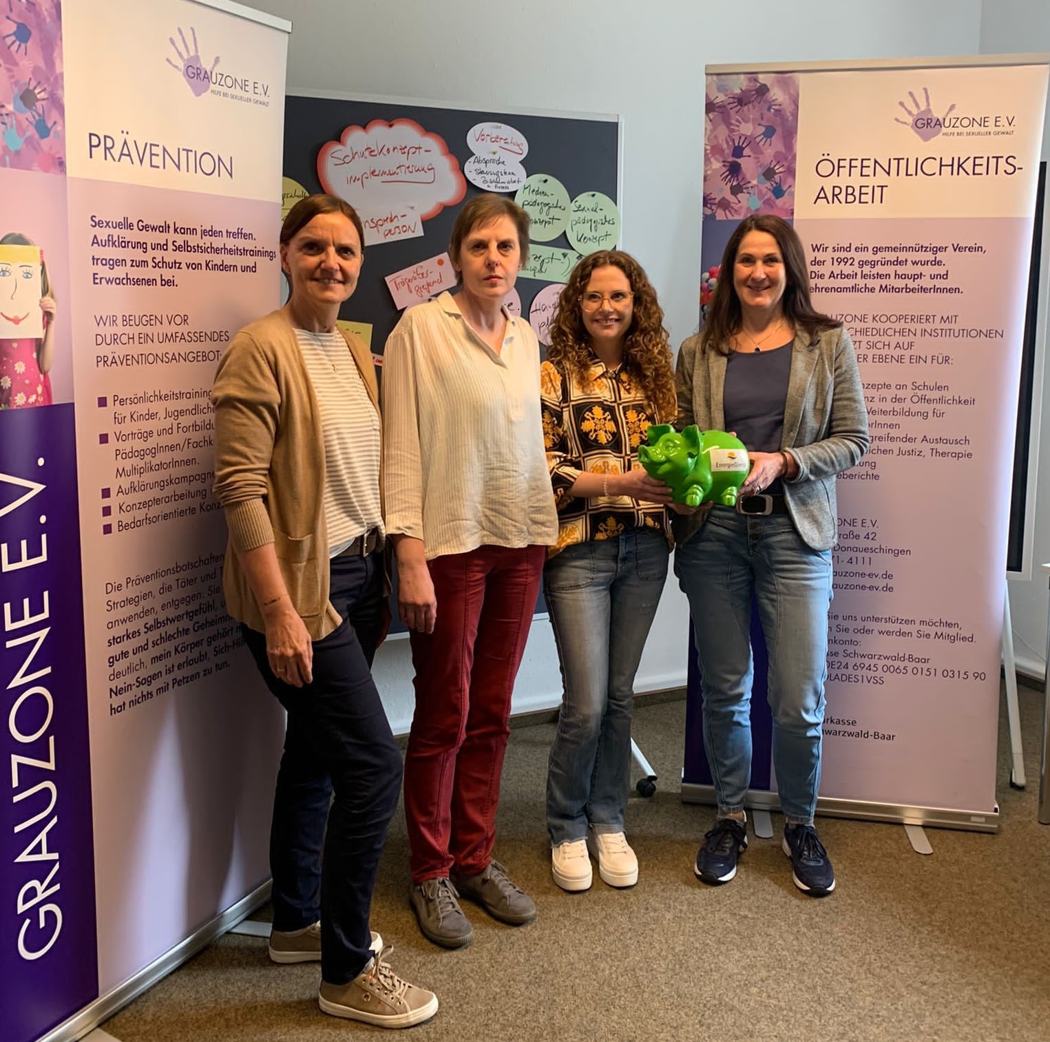 Bei der vom Betriebsrat 2017 initiierten Aktion „Stundenspende“ können Mitarbeitende Stunden aus Überzeitkonten spenden oder auch direkt einen Geldbetrag zur Verfügung stellen. Bereits zum wiederholten Mal werden damit soziale Projekte unterstützt. 1.500 Euro übergaben Heidi Hörenz, Sarah Klein, Birgitt Möhrle und Alexia Weisser, Betriebsrätinnen bei Energiedienst, an Angela Donno und Kerstin Rülke von der Grauzone.