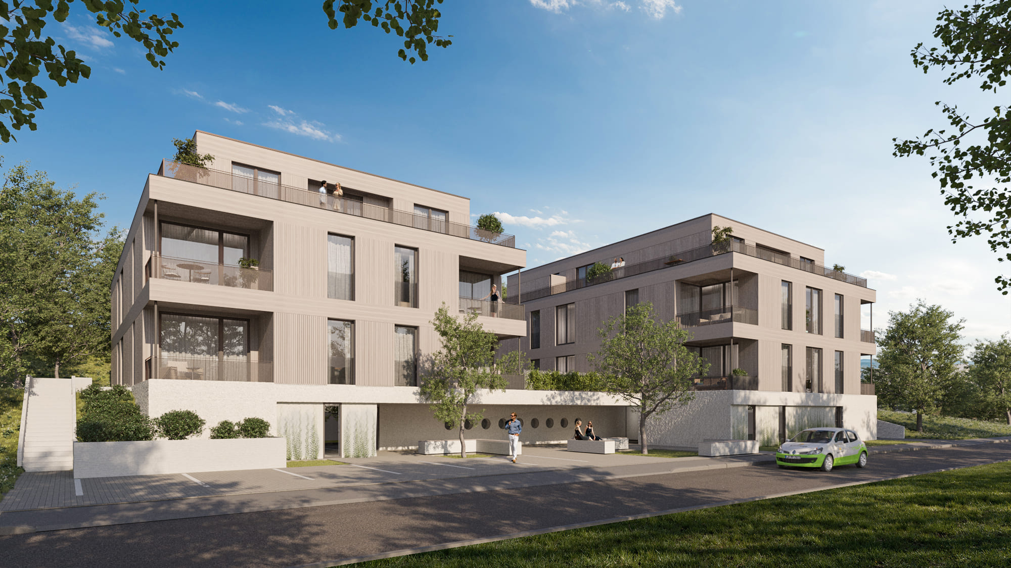 Die beiden Mehrfamilienhäuser hat naturenergie als Niedrigenergiehäuser konzipiert. Sie erreichen den Energiestandard 40 Plus. Teil des ökologischen Energiekonzepts sind die dämmende Gebäudehülle, eine dezentrale Wohnraumlüftung mit Wärmerückgewinnung sowie eine Fußbodenheizung. In der ebenerdigen Tiefgarage richtet naturenergie an allen Stellplätzen Anschlüsse für Ladestationen vor. Dazu installiert das Unternehmen ein Lademanagementsystem, das das schnelle Laden von Elektroautos mit sauberem Strom aus regionaler Wasserkraft ermöglicht. Eine Photovoltaik-Anlage auf dem Dach mit Batteriespeicher sowie die Wärmeversorgung mit Erdwärme runden das nachhaltige Energiekonzept der Wohnanlage ab.