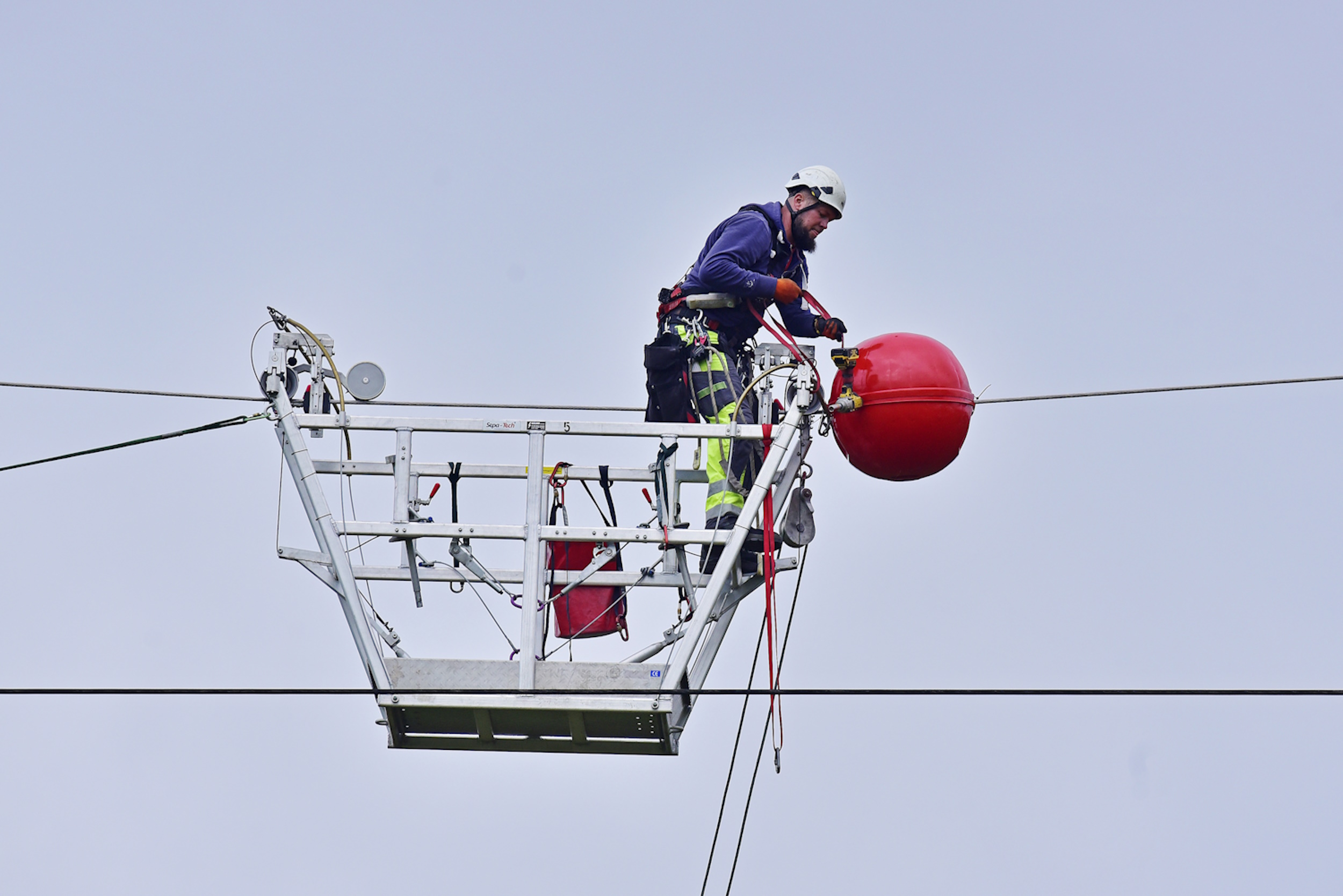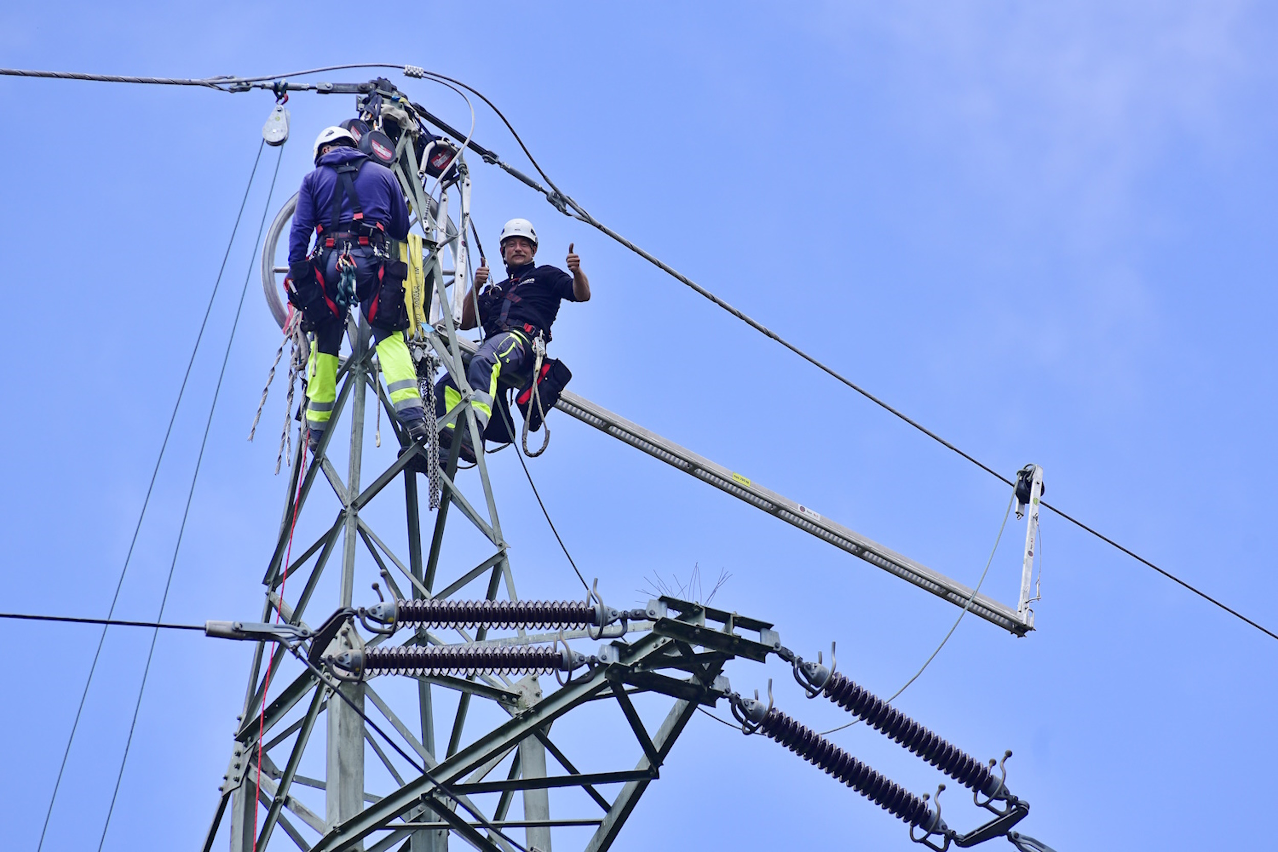Bilder (Bild 1 / Bild 2 / Bild3): naturenergie netze rüstet die Hochspannungsleitung zwischen Donaueschingen und Blumberg/Zollhaus mit modernem Glasfaser-Luftkabel aus – für bessere Überwachung, schnellere Steuerung und mehr Versorgungssicherheit. Fotos: Roland Sigwart/naturenergie netze GmbH
