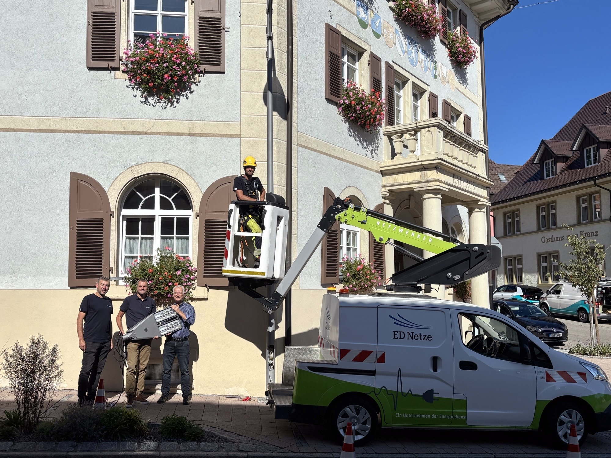 Für die Montage setzt das Unternehmen auf eigenes, erfahrenes Personal und einen elektrisch betriebenen Hubsteiger – ein Verfahren, das sich bereits in zahlreichen Kommunen im Netzgebiet bewährt hat.